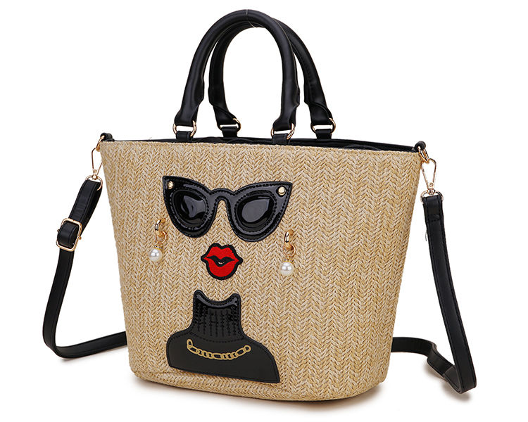 Straw Character Badge Pattern Women Vacation Totes Purses and Handbags Crossbody