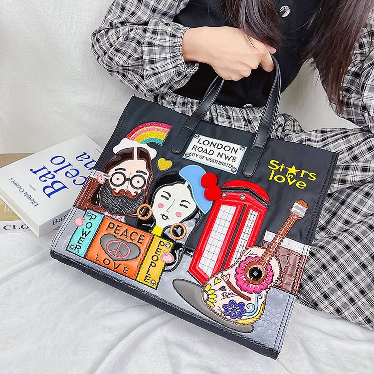 Cartoon Pattern Embroidery Nylon Shoulder Bag for Women Fashion Female Purses a