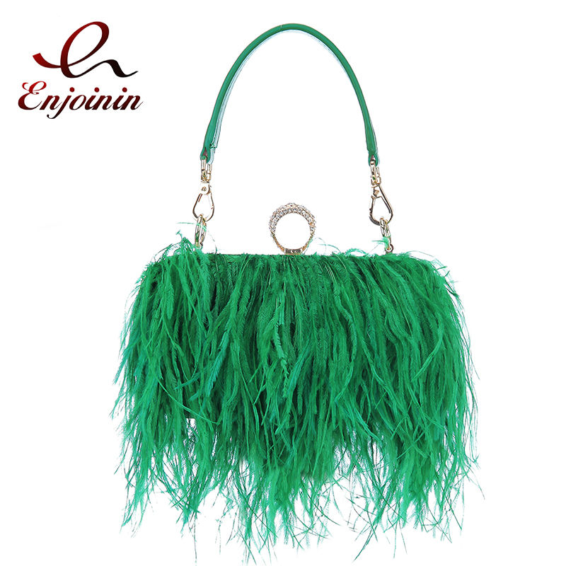 Luxury Ostrich Feather Party Evening Clutch Bag Women Wedding Purses and Handbag