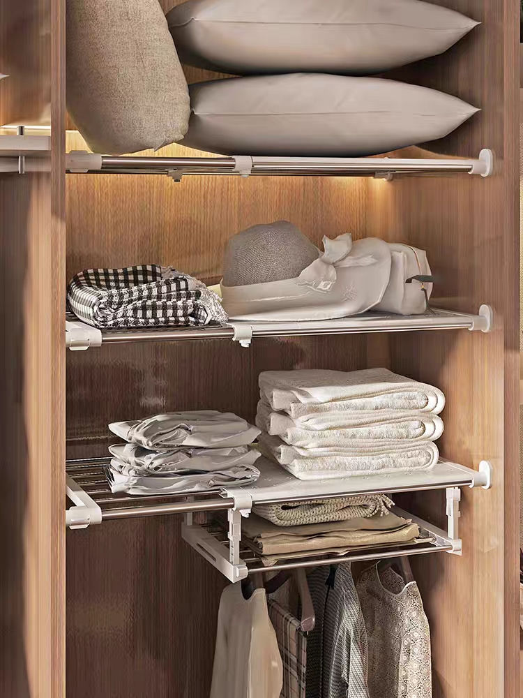 Wardrobe Expandable Divider Adjustable Closet Shelf Punch-free Storage Shelves C