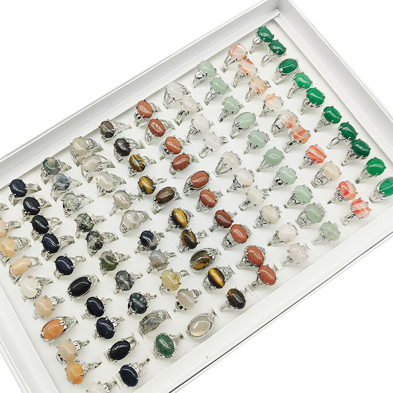 100pcs/Lot Wholesale Hot Mix Size Natural Stone Finger Rings for Women Men Fashi